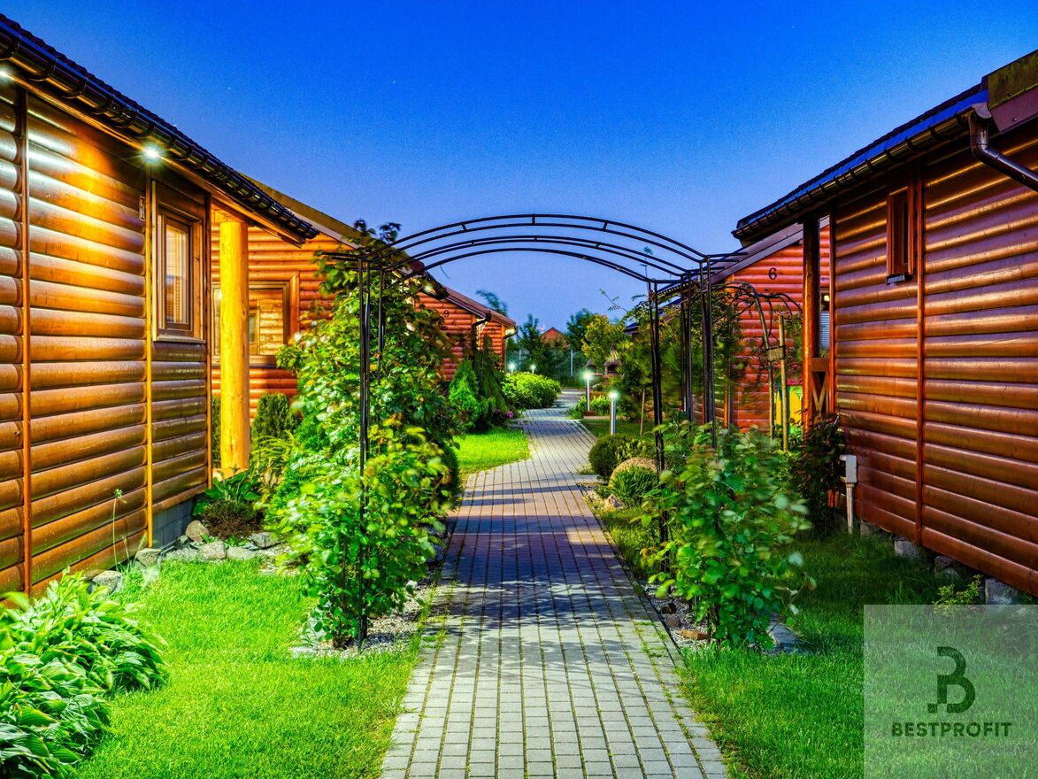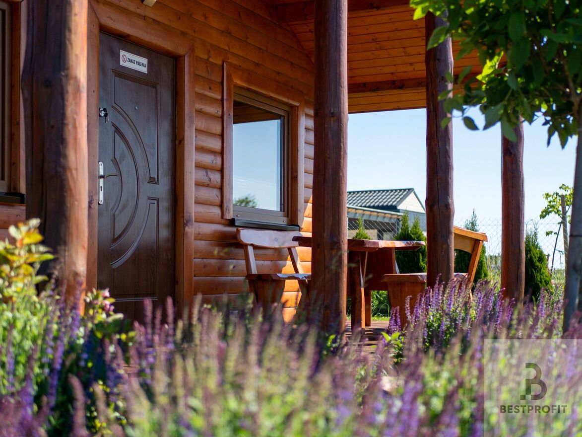 * 30 całorocznych, drewnianych domków, każdy o powierzchni 42m
